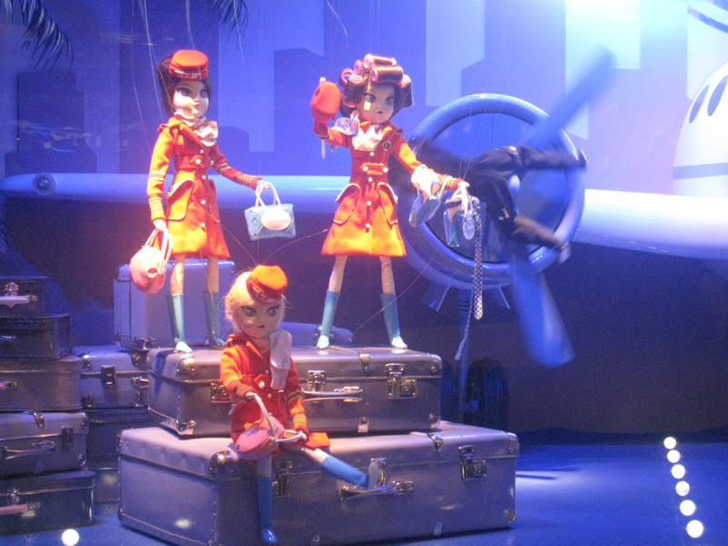 Karl Lagerfeld’s “Noël, Rêves d’Evasion” animated window spectaculars at Printemps were created by Jean-Claude Dehix, a master artist of puppets and marionettes with decades of experience at pulling all the right strings. And spools of it! Dehix uses 32,000 feet of nylon (that’s about six miles!) in each window. The mind reels!