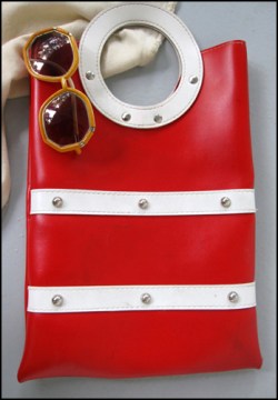 My latest Porte de Vanves booty includes a nautical cap and an ultra-mod studded bag in red, along with a thick pile of vintage fashion magazines. And none cost more than five euros. I also found two pair of Ted Lapidus hexagonal sunglasses for even less.