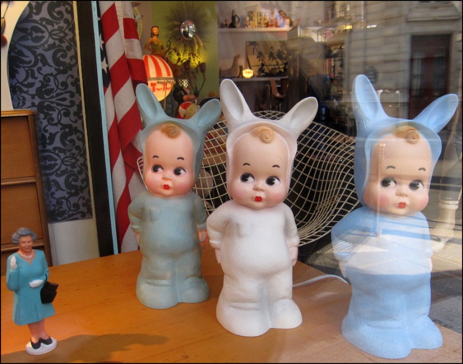 Thanks, Pam!! Imagine a room with fifty of the bunny babies. What an interior. What a hopping shrine!! Enjoy the weekend, T. (The shop is located in Chatêlet. I also love the sweet little Queen.)