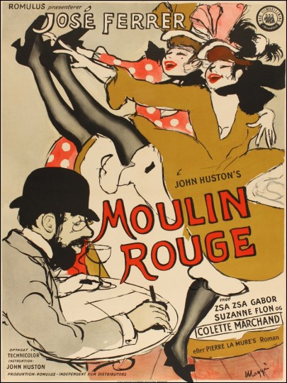 Star Power: Numerous movies have been made about the the historic music hall, including John Huston’s 1952 Moulin Rouge (starring José Ferrer and Zsa-Zsa Gabor), Réne Clair’s 1925 Fantôme du Moulin Rouge, Ewald André Dupont’s 1928 Moulin Rouge, Jean Renoir’s 1954 Le French Cancan, and Baz Luhrmann’s particularly exuberant 2001 Moulin Rouge, with Ewan McGregor and Nicole Kidman.