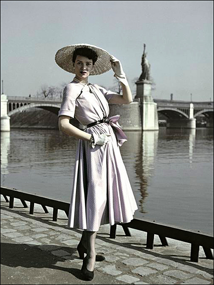 DIOR’S “NEW LOOK” AND LA STATUE DE LA LIBERTÉ, Île des Cygnes, BY COMBAT PHOTOGRAPHER ROBERT CAPA, PARIS, 1948