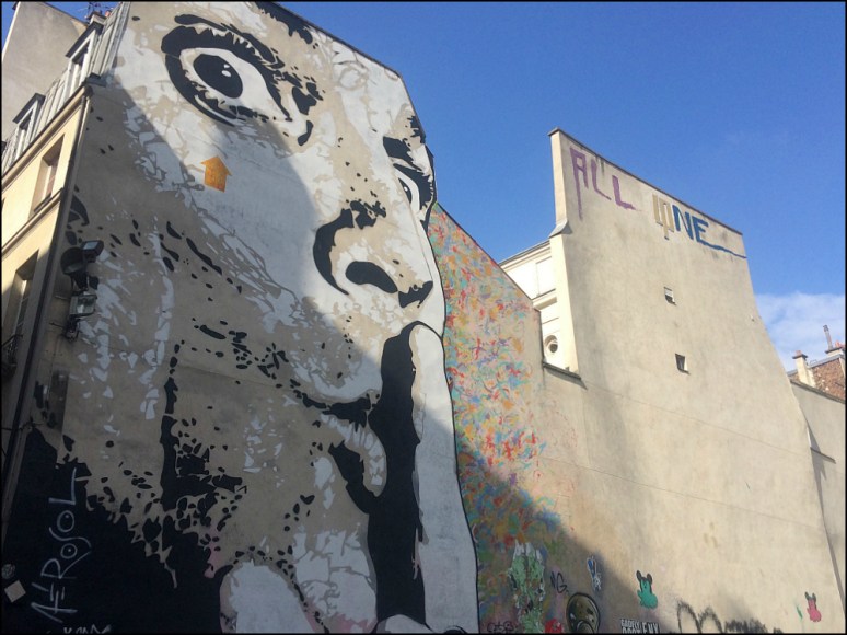 “SHHHH” BY JEF AEROSOL, CENTRE POMPIDOU MURAL’S MESSAGE? STOP, LOOK AND APPRECIATE THE CITY! (PHOTO BY T. BRACK)